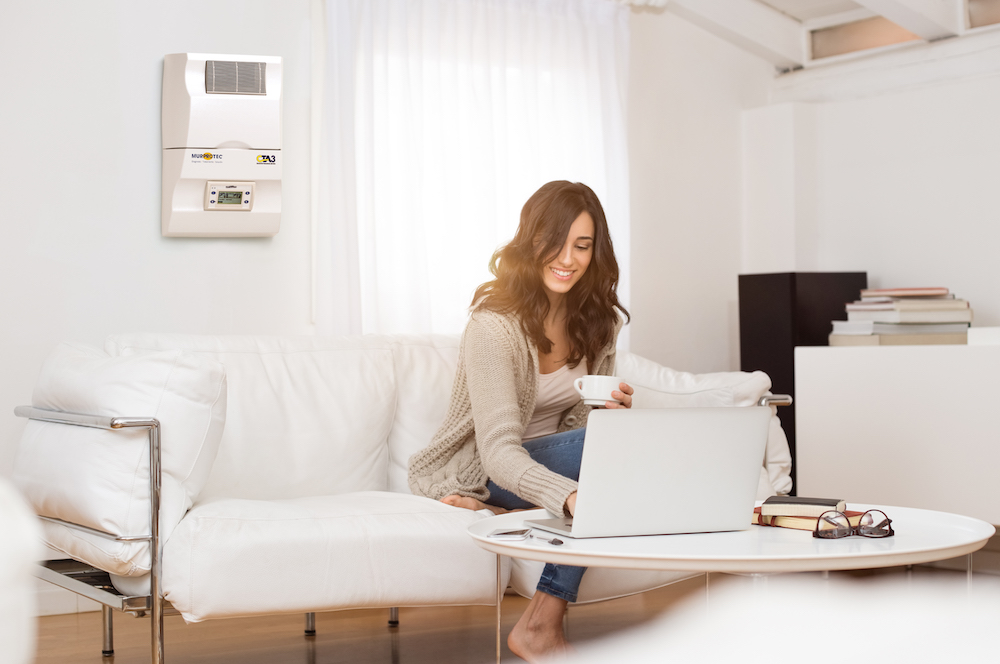 La Central de Tratamiento del Aire (CTA) de Murprotec actúa como un auténtico “pulmón artificial” en los edificios, ya que aspira aire limpio del exterior, lo filtra y lo introduce en el interior mientras expulsa el aire viciado y húmedo hacia fuera. De esta forma genera una ligera sobrepresión que permite que el aire fresco llegue a todos los rincones, incluso a las zonas más frías y ocultas de las viviendas, mejorando así de manera significativa la calidad del aire interior sin necesidad de abrir ventanas.