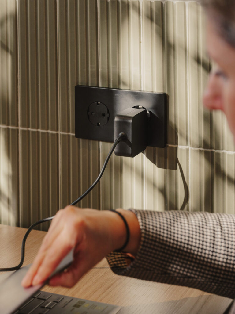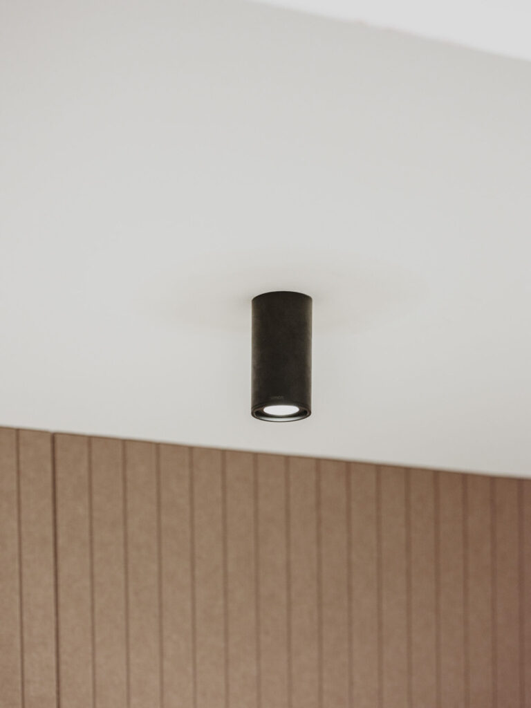 A lo largo de todo el recinto, los downlights Simon 640, en versiones empotradas y suspendidas, permiten combinar iluminación general y de acento, adaptándose a las distintas dinámicas del centro. La instalación se completa con la serie de mecanismos Simon 270 en acabado negro, incluido el sistema Clean Schuko en las gradas, que refuerza una estética cuidada y coherente con el diseño del espacio, así como con las soluciones de conectividad Simon 500 en puestos de trabajo a pared, aportando funcionalidad, orden y una integración discreta de la tecnología en las oficinas.